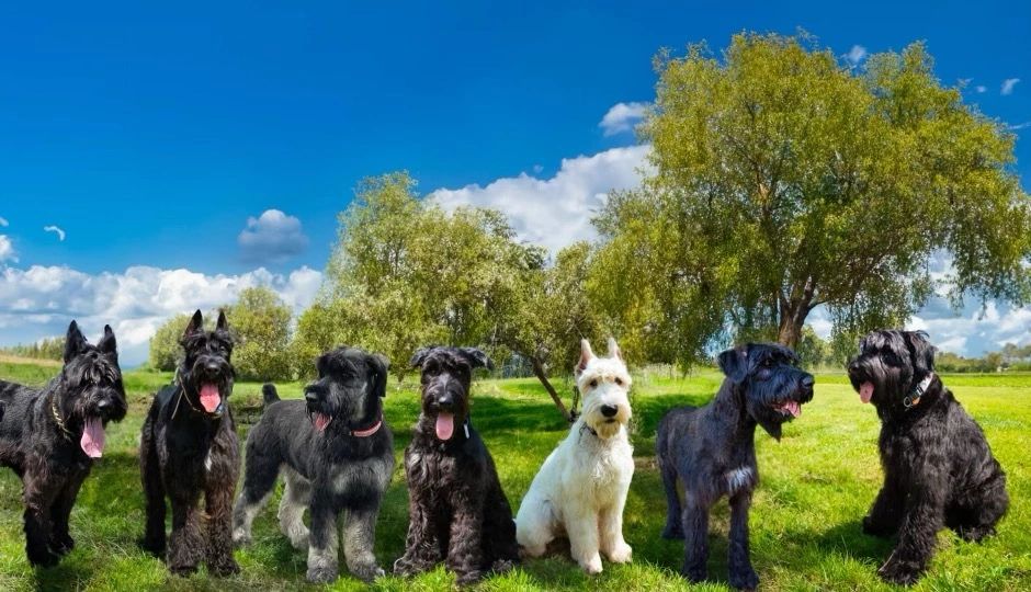 The Giant Schnauzer is a larger more powerful version of the smaller Standard Schnauzer. They are ruggedly built with a dense, weather-resistant coat that is black, white, silver or salt and pepper in color.